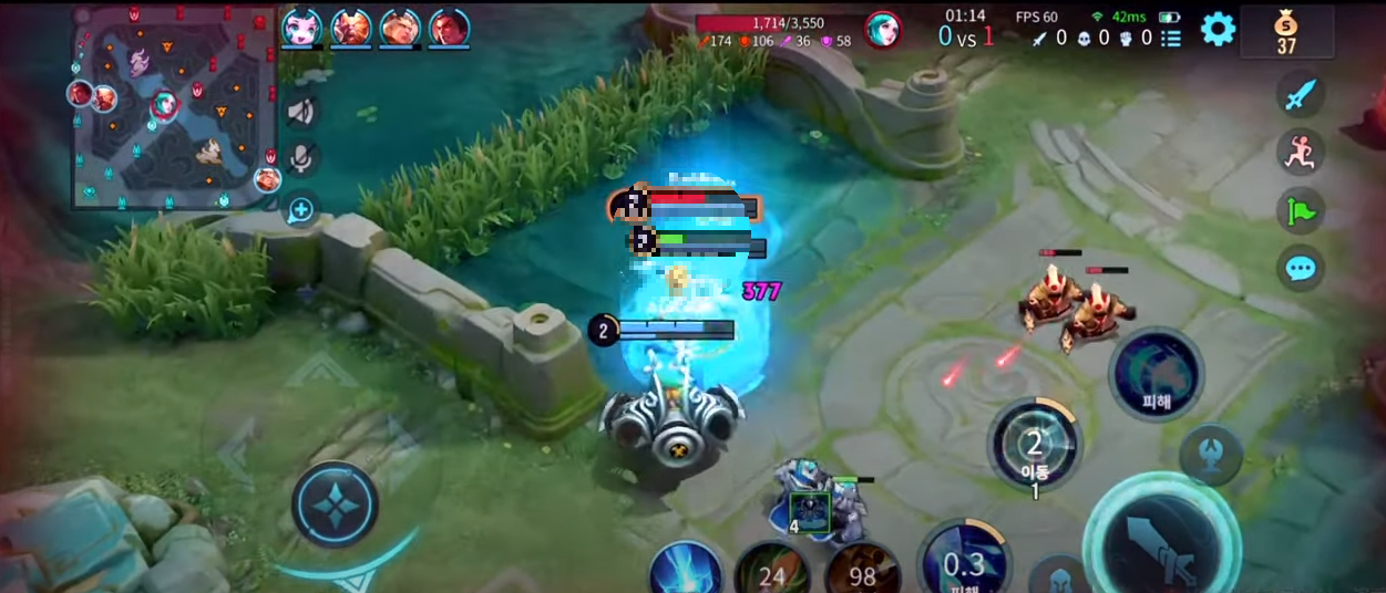 라인 클리어가 빠르고 다른 라인을 공격하는 플레이가 많아서 서포터는 모두 '로머'로 분류되며 영웅에 따라 플레이 방식이 크게 달라집니다. 게임 조작도 모바일게임 답지 않게 느려짐 없이 부드럽게 이어집니다. 영웅들이 사용하는 스킬은 화려하고 암살자의 경우 캐릭터가 매우 빨리 움직이는데, 조작 방식에 따라 번쩍이며 모든 스킬을 꽃아 넣을 정도로 반응이 빠릅니다.