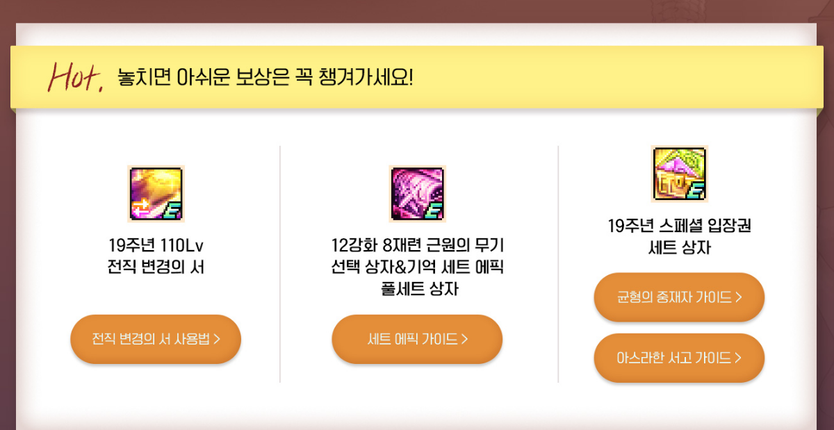 마지막으로, 넥슨은 던파 19주년 기념 이벤트를 통해 110레벨 전직 변경의 서, 12강화 8재련 근원의 무기 선택 상자, 기억 세트 에픽 풀세트 상자 등 다양한 보상을 추가로 제공합니다. 던파를 시작하거나 복귀하려는 유저들에게 이번 이벤트는 최고의 기회가 될 것입니다.