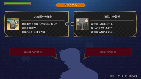 역전검사 시리즈의 특별한 시스템으로는 로직과 로직 체스가 있습니다. 로직은 두 가지 정보를 조합해 새로운 정보를 얻는 방식으로, 잘못된 조합을 시도하면 '진실 게이지'가 감소해 스릴 넘치는 플레이를 제공합니다. 로직 체스는 진실을 말하지 않으려는 상대에게 대화에서의 흥정을 체스에 비유한 시스템으로, 제한 시간 내에 적절한 대응을 선택해 상대를 무너뜨려야 하는 긴장감 넘치는 요소입니다.