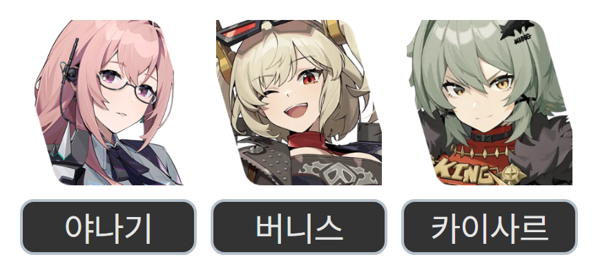 - 야나기 + 버니스 + 카이사르 (실드 및 버프)
