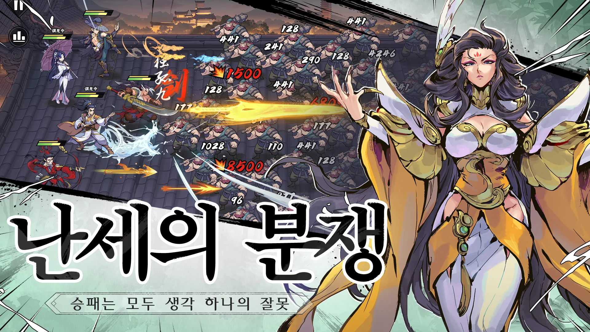 강호영웅은 동양적인 수묵화풍 디자인으로 완전히 다른 매력을 보여줍니다.