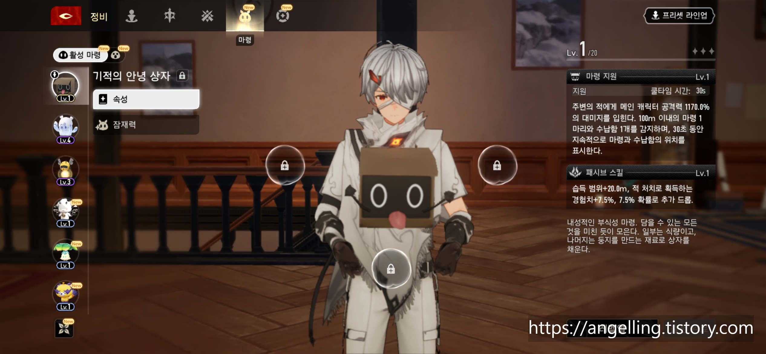 또한 마령(펫) 스킬 중 회복형이나 탐지형을 활용하면 생존력과 파밍 효율이 모두 올라간다. 상자 파밍 가능한 펫이 있다면 기적의 안녕상자 펫은 필수인것같다. 위치는 아이스레이크 시티 하수도에서 상자파괴하면 보이는 펫이다. 초반에는 아주 유용하게 사용할 수 있는 펫이다.