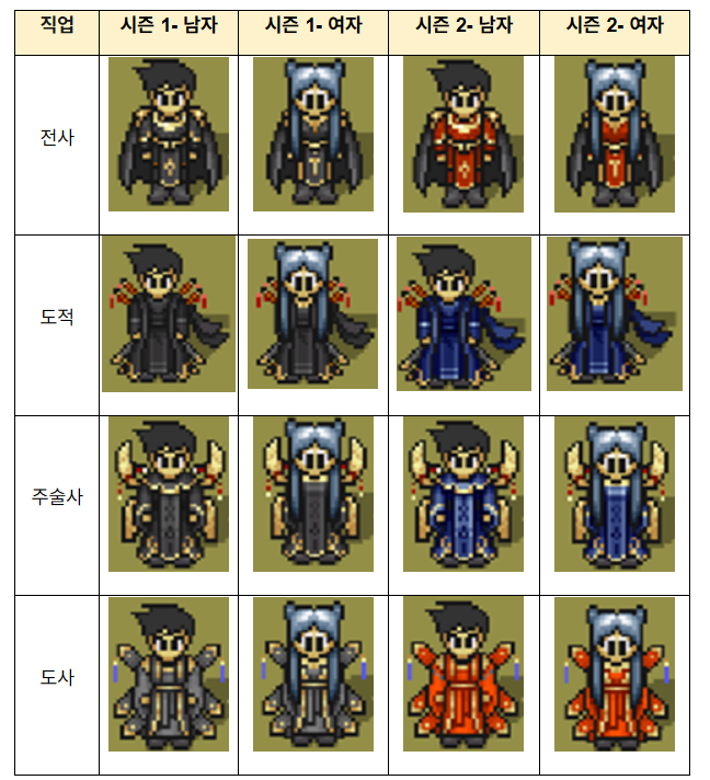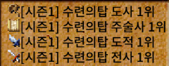 시즌 1위 특전 의상: 각 시즌의 직업별 1위를 달성한 캐릭터에게는 수련의탑에서만 획득할 수 있는 특별한 색상의 의상이 캐릭터의 직업과 성별에 맞춰 보상으로 지급됩니다. 이는 해당 시즌의 최고임을 증명하는 상징적인 아이템입니다.