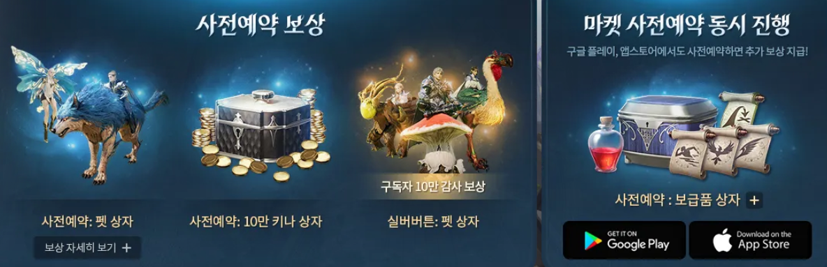 사전예약은 PC·모바일 둘 다 가능하며, 기본 보상만 해도 다음과 같습니다.