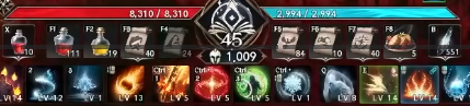 잦은 스킬 난사로 마나가 57% 이하로 떨어지지 않도록 관리하는 것이 중요합니다. 이 수치를 유지하는 것만으로도 장비 스펙을 보완하는 엄청난 딜 이득을 봅니다.