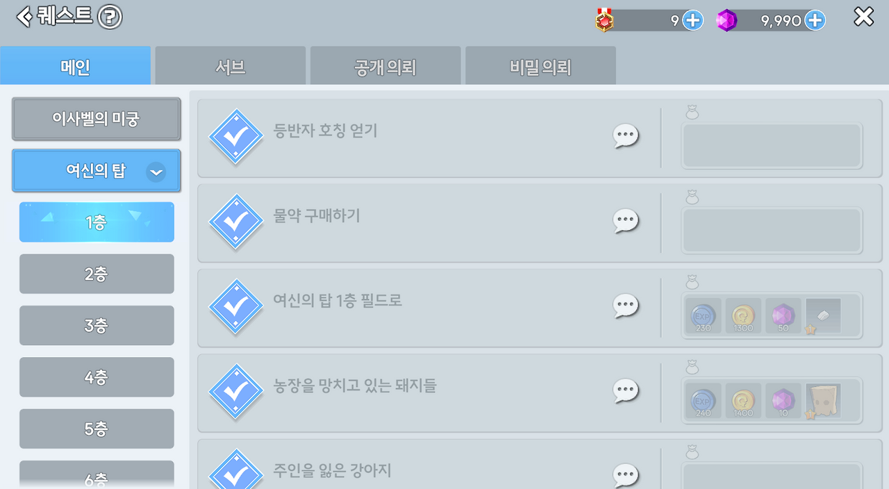 4. 1~20레벨 육성 루트 메인 퀘스트
