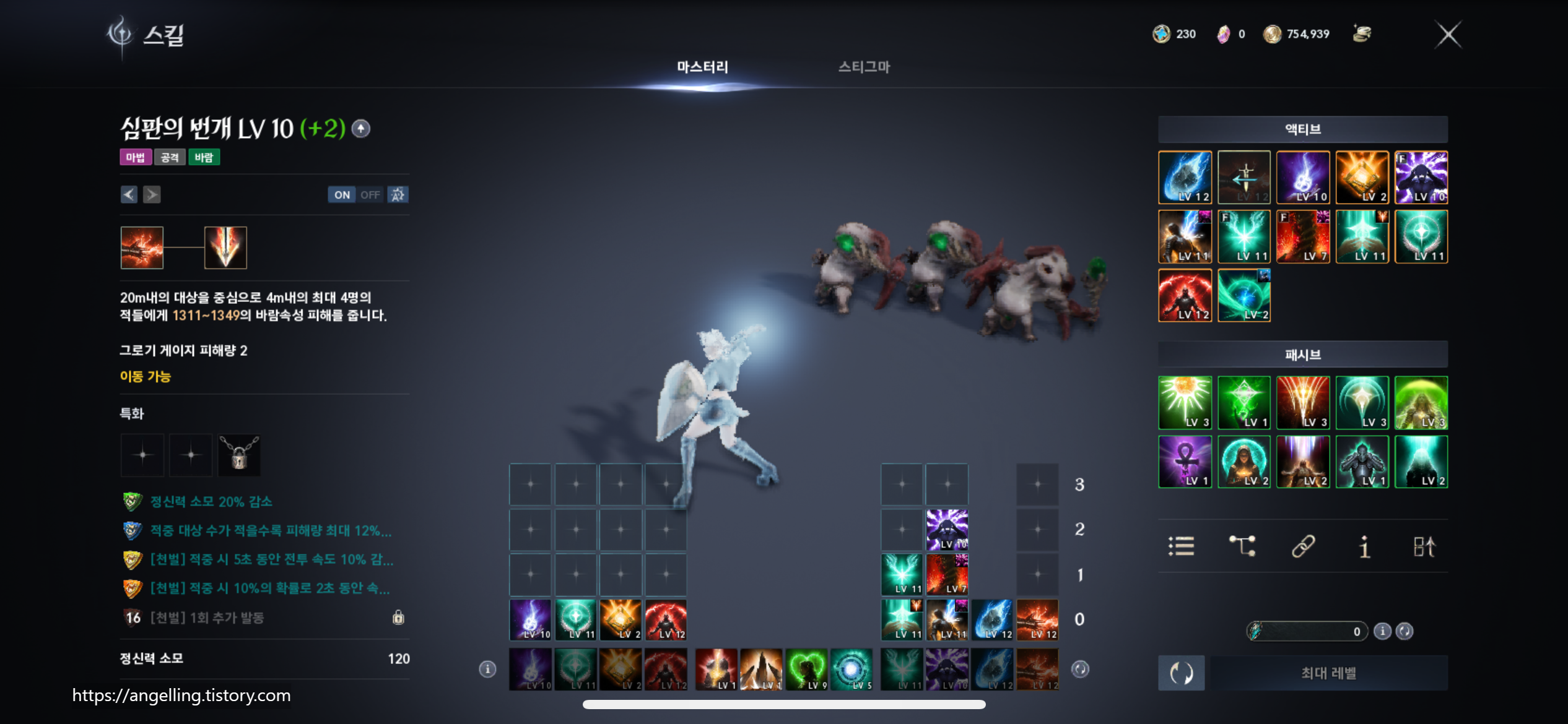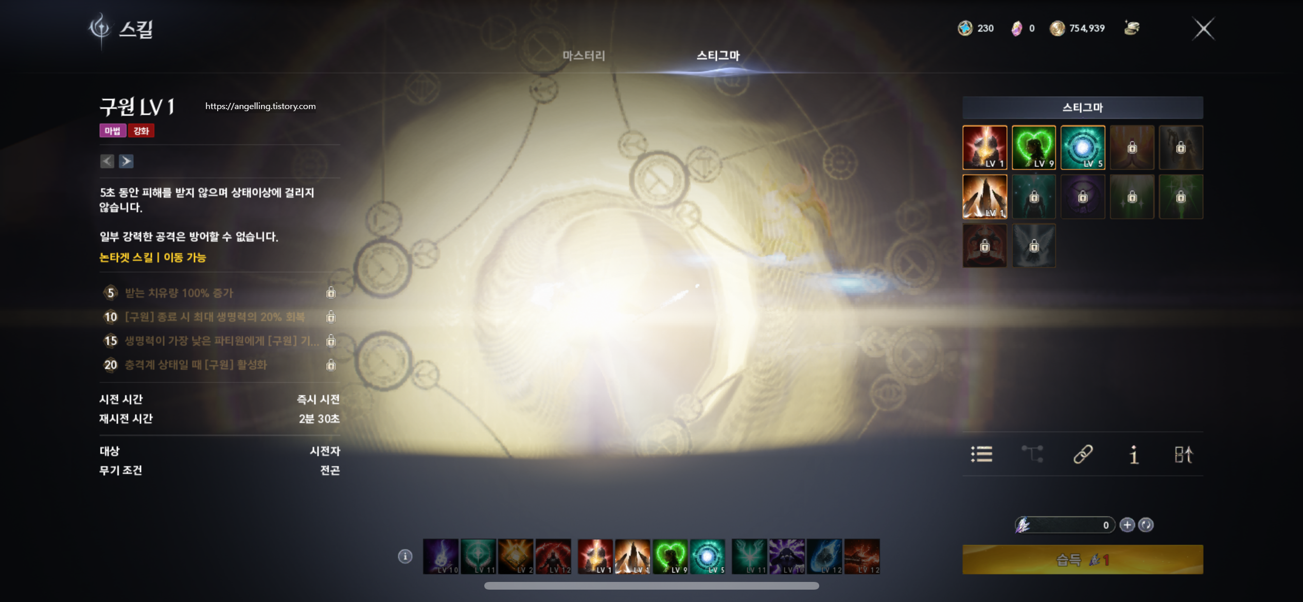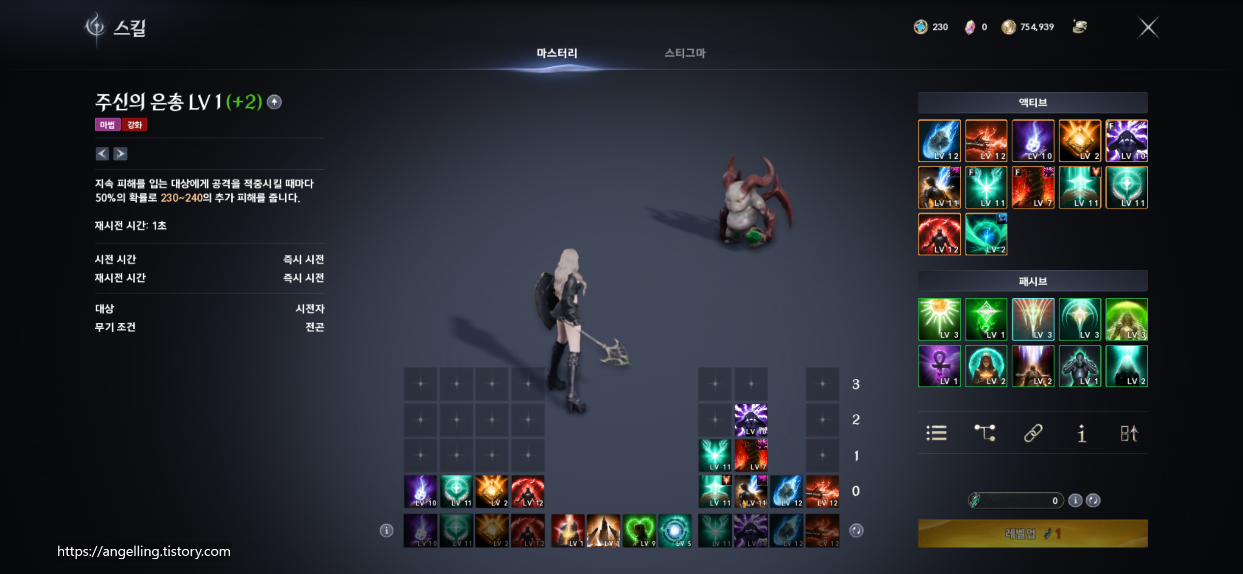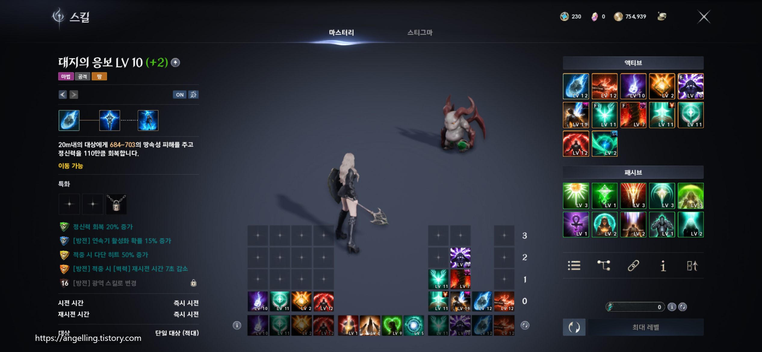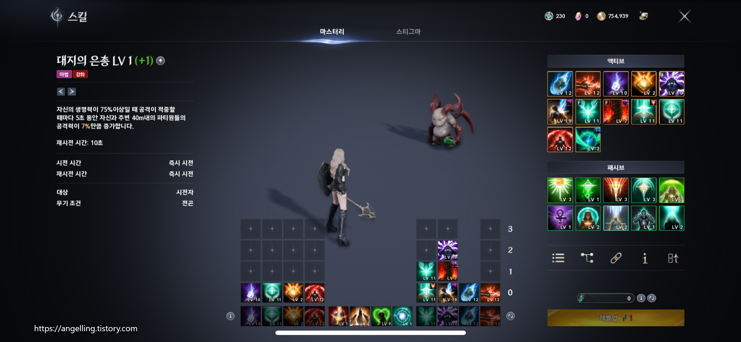 대지의 은총(공격력 증가) / 그 외 힐·생존 패시브는 1포인트씩 분산 후 밸런스 조정