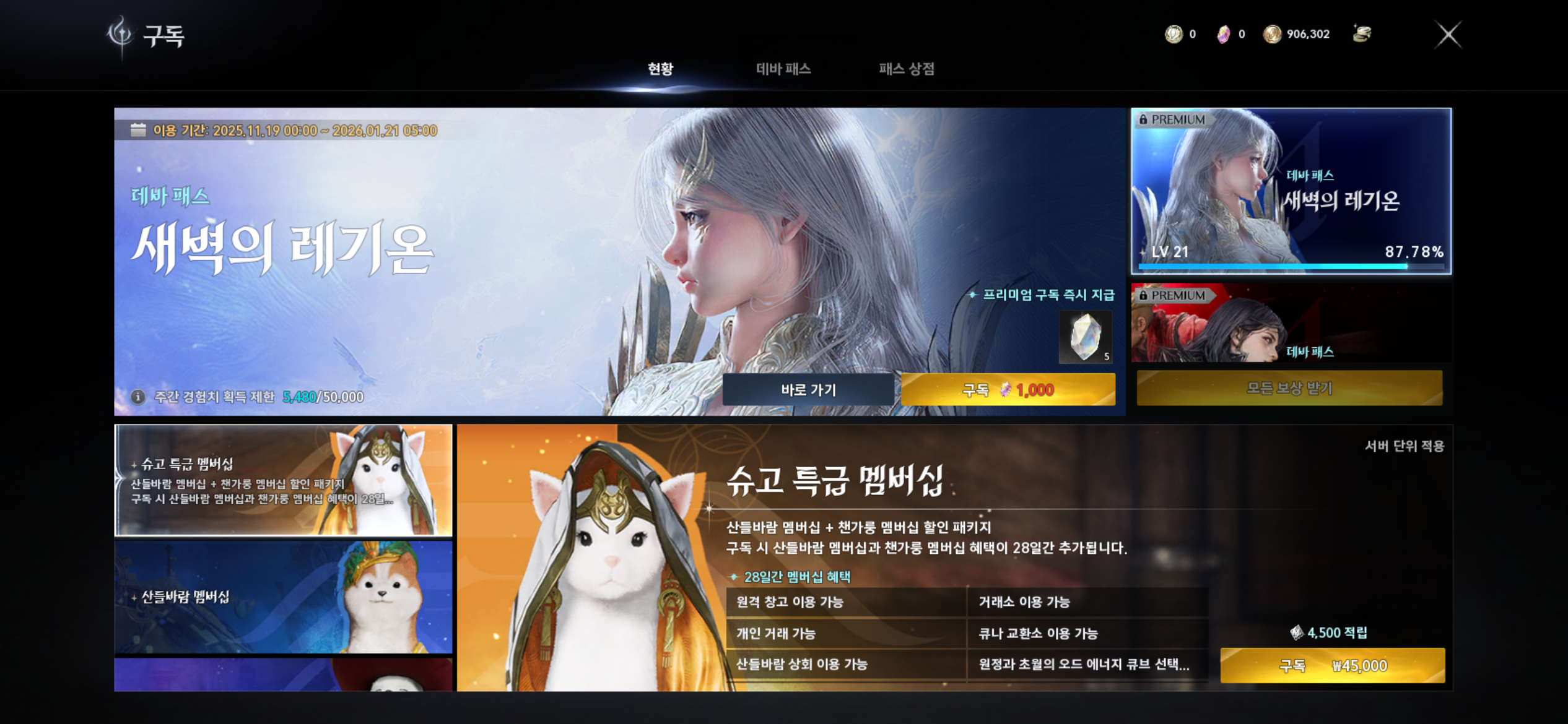 | 데바 패스 | 기본 보상 및 과금 보상으로 다량의 오드 에너지를 제공합니다. |