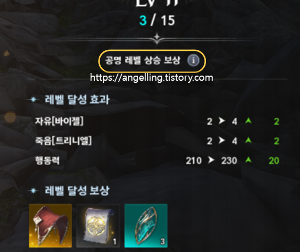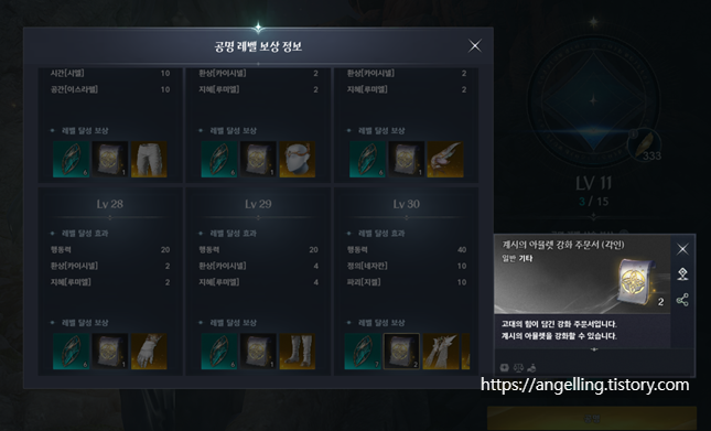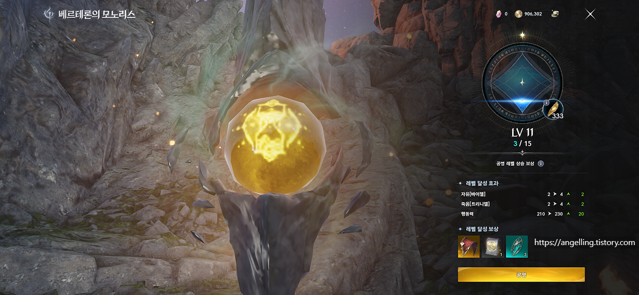 고급 보상 획득: 모노리스 레벨을 올리면 스탯 포인트, 아뮬렛 강화 주문서, 영혼석 초기화권 등이 제공됩니다.