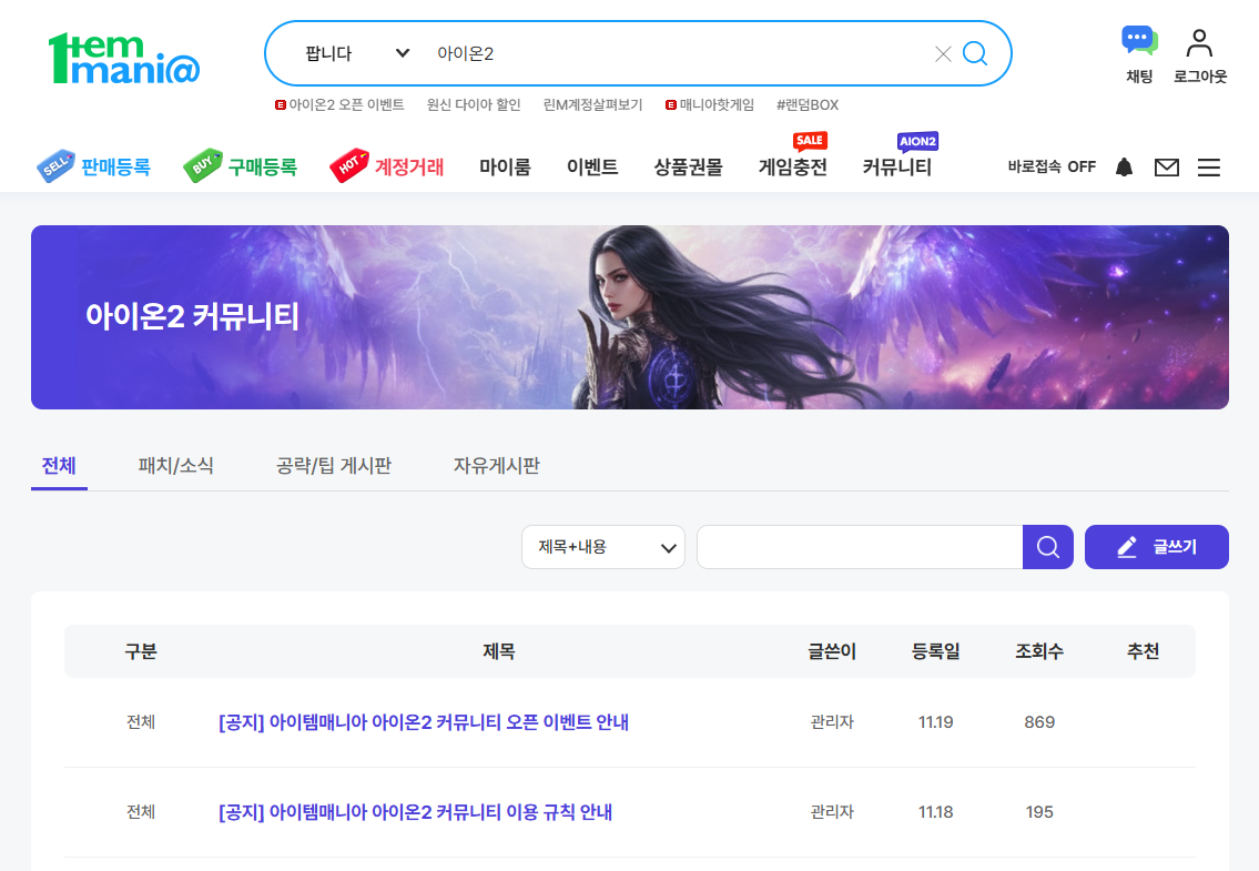 아이온2 커뮤니티도 생겨서 더 많은 정보를 얻을수 있다고 합니다!