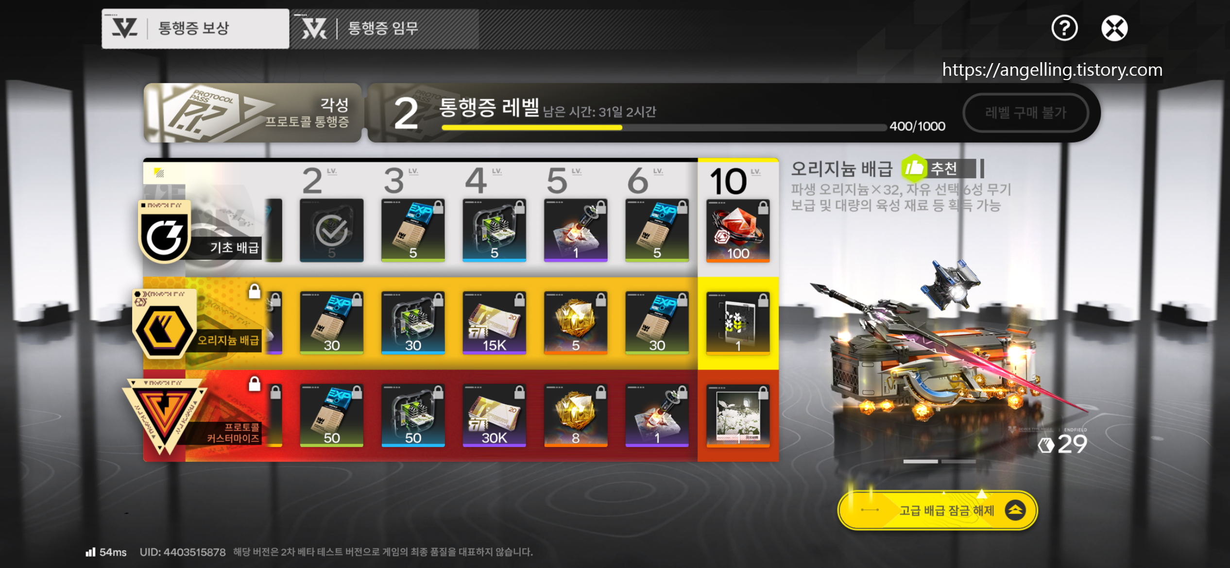- 2단계 패스: 오리지늄 29개 → 6성 무기 선택 상자