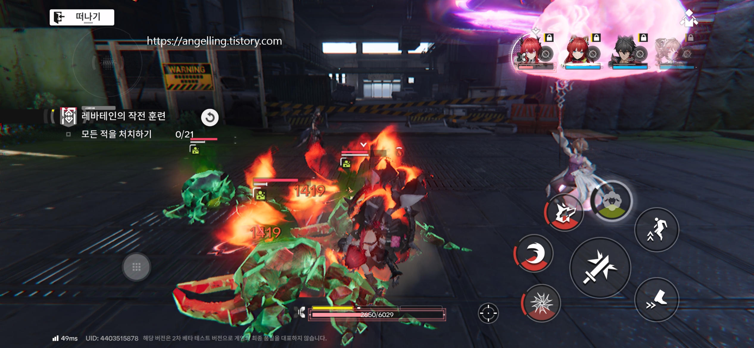 회피 성공, 적 띄우기, 특정 스킬 타이밍 등 조건을 만족하면 다음 캐릭터를 불러 연계하는 QTE가 발동합니다.