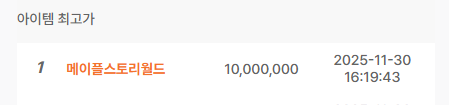 | 메이플스토리 계정거래 메소 시세 아이템매니아 기준으로 완벽 정리 (0) | 2025.12.10 |