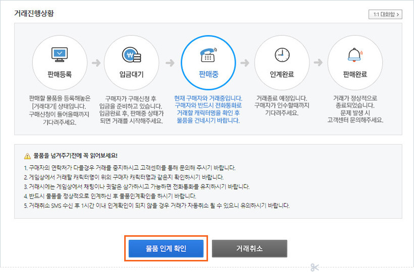 판매자가 등록한 매물을 구매자가 선택하고 결제를 마치면 거래가 본격적으로 시작되죠.