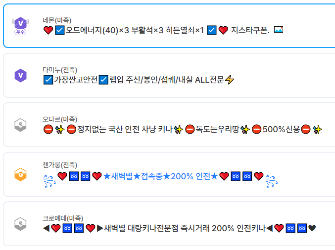 - 매매보호 시스템 (에스크로): 구매자가 결제한 대금을 플랫폼이 안전하게 보관합니다. 계정 정보 인계 및 비밀번호 변경, 2단계 인증 완료 등 구매 확정이 이루어진 후에만 판매자에게 대금이 지급되므로 먹튀 사기 위험이 원천 차단됩니다.
