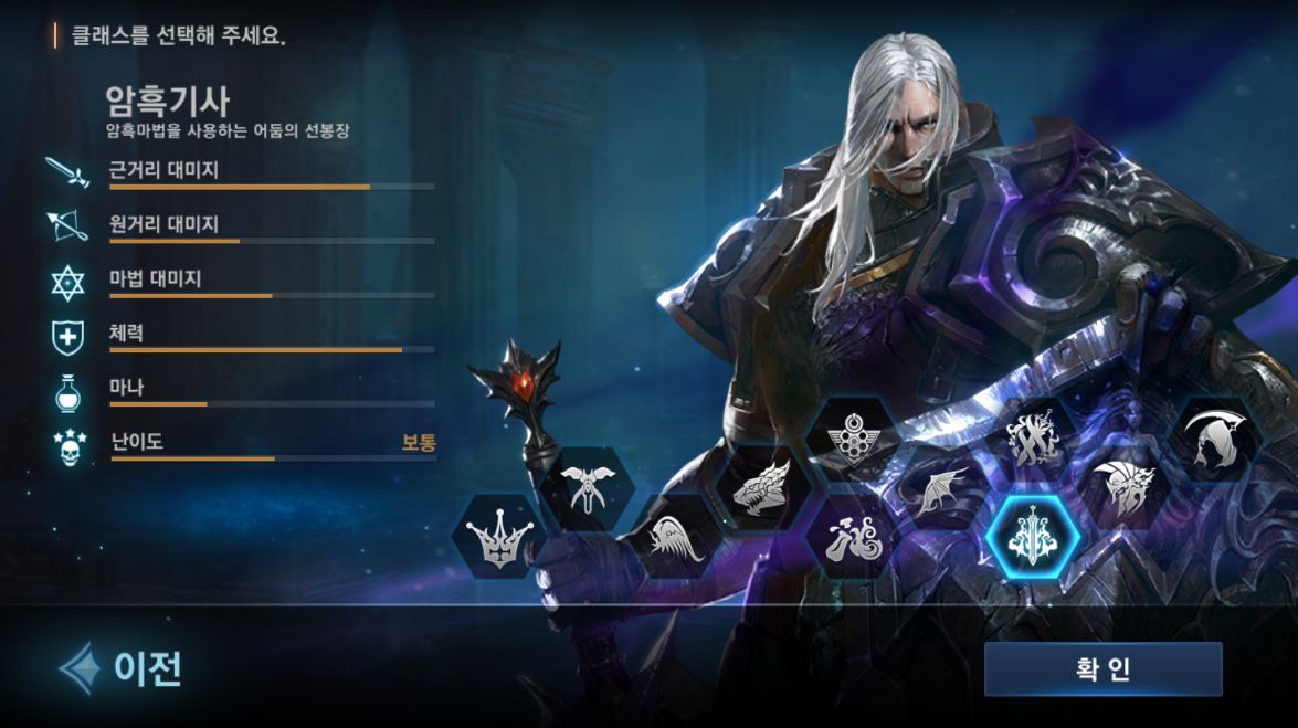 암흑기사는 강력한 근접 공격과 안정적인 생존력을 동시에 요구하는 클래스입니다.