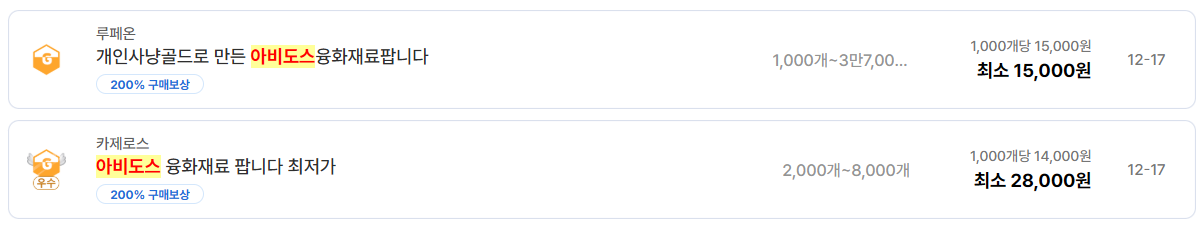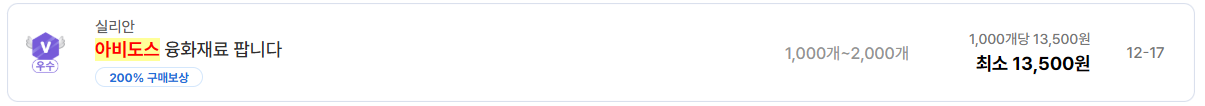 시세: 1,000개당 13,000원 ~ 15,000원 선.
