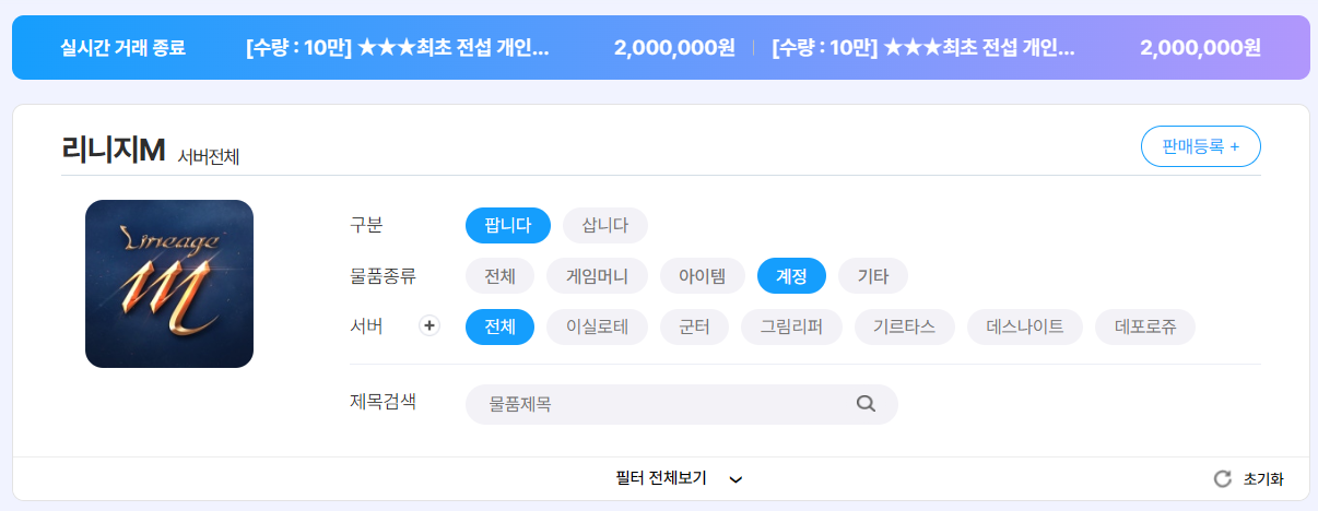 최근 아이템매니아에 등록된 리니지M 계정 거래 내역을 쭉 살펴보면, 예전과는 확연히 달라진 시장 분위기를 체감할 수 있다.