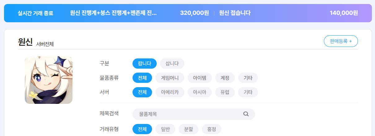 ‘원신 접습니다’라는 문구가 붙은 계정이 14만 원에 거래 종료된 점도 주목할 만하다. 이런 매물들은 대부분 빠른 처분을 목표로 나오기 때문에, 시세 하단을 형성하는 역할을 한다. 이로 인해 전체 계정 시장 가격대가 자연스럽게 눌리는 구조가 만들어진다.