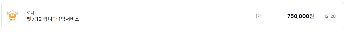 펫 관련 아이템도 로나월드 경제에서 빼놓을 수 없다. 펫공 11은 350,000원, 펫공 12에 1억 서비스 포함 상품은 750,000원에 거래되고 있다. 이는 편의성과 성장 효율을 중시하는 유저층이 확실히 존재한다는 것을 의미하며, 현질 부담을 줄이고 빠른 성장을 원하는 유저들이 아이템 거래 시장으로 유입되고 있음을 보여준다.