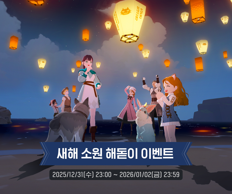 2026년 마비노기 모바일의 첫 이벤트는 풍성한 보상과 함께 감성적인 연출이 돋보입니다. 12월 31일 밤에는 콜헨 앞바다에서 풍등을 날리며 해돋이를 감상하고 매일 사냥과 던전을 통해 스탬프 120개를 꽉 채워 미스틱 던전 열쇠와 촉매제를 우선적으로 확보하는 전략을 추천합니다.