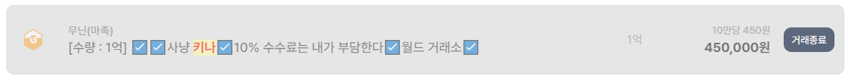 | 무닌(마족) | 1억 키나 | 450,000원 | 4,500원 |