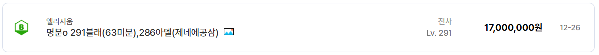 베라 서버는 상대적으로 안정적인 시세를 유지 중이다. 287레벨 해방 팔라딘 언컨 계정이 320만원, 284레벨 렌 본주 계정이 500만원 선으로 형성되어 있으며, 전반적으로 ‘명분 O’ 계정의 거래 성공률이 높은 편이다. 최근 아이템매니아 거래 데이터를 보면 베라 서버는 흥정이 적고, 가격 방어가 잘 되는 서버라는 인식이 강하다.