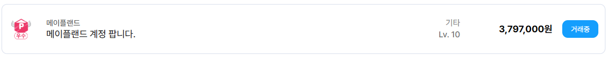 현재 메이플랜드 계정 거래 시장은 견고한 수요를 바탕으로 활발하게 움직이고 있습니다. 주목할 점은 3,797,000원이라는 고가에 올라온 계정입니다. 해당 계정은 표기된 레벨이 낮더라도 내부에 보유한 대량의 게임 재화나 현재는 구할 수 없는 희귀 아이템이 포함되었을 가능성이 매우 높습니다.