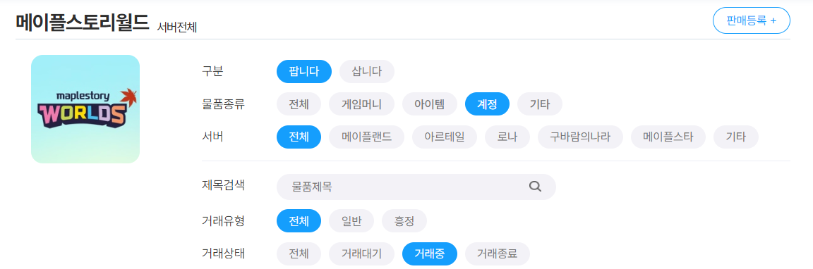 | 메이플랜드 메랜 궁수 계정 거래 시세 노목 고가 장비 실거래 기준 정리 (0) | 2026.01.06 |