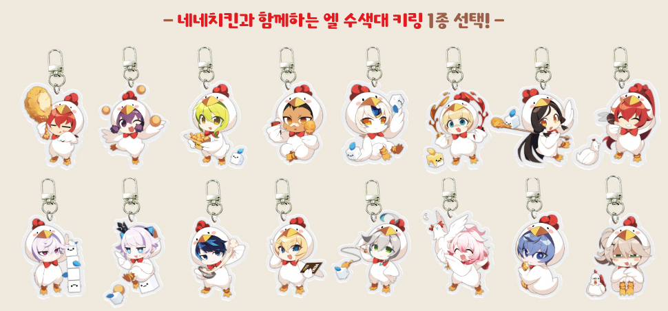 엘 수색대 키링: 게임 내 주요 인물들을 형상화한 디자인으로 총 12종 중 1종을 선택하여 받을 수 있습니다.