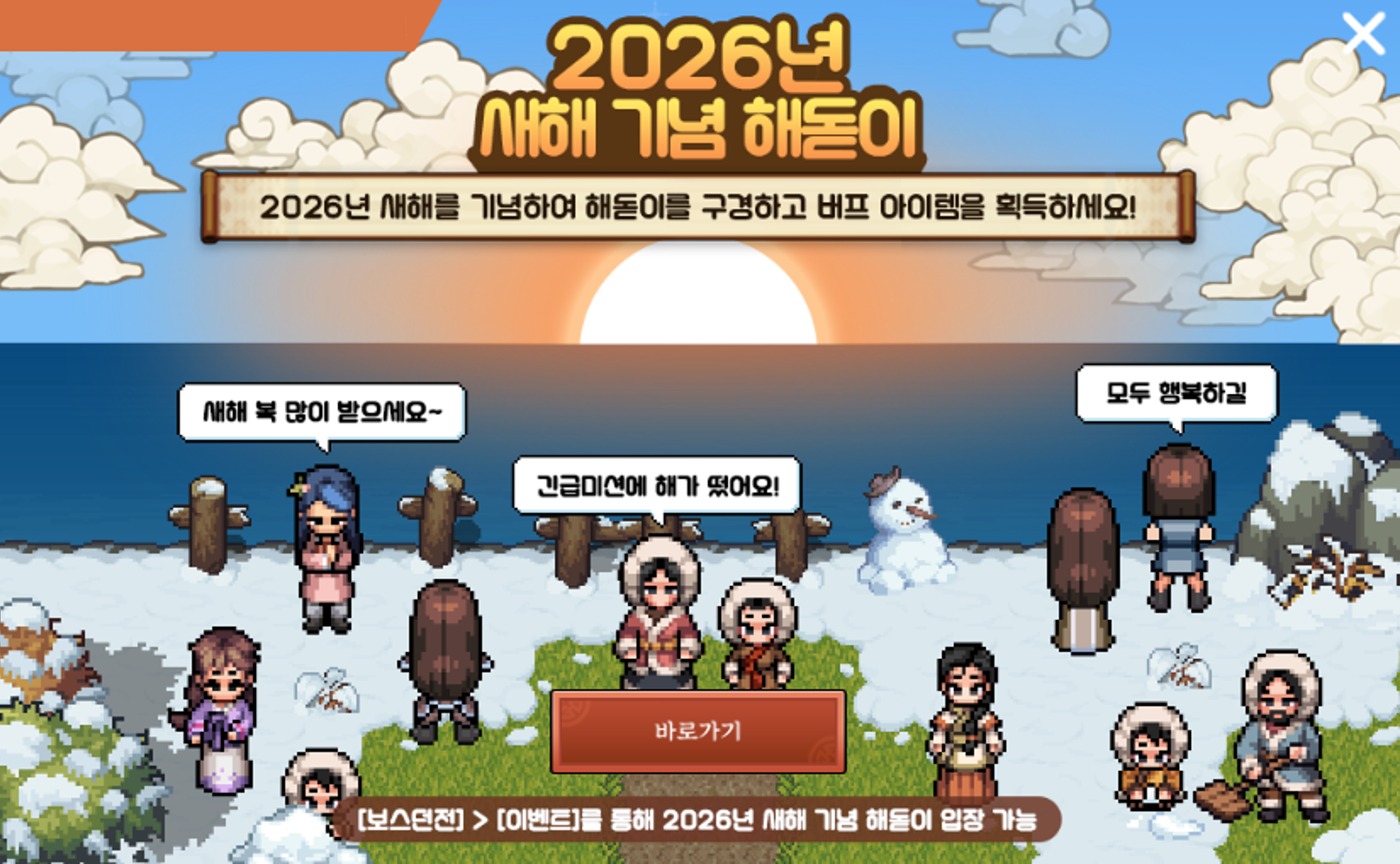이번 해돋이 이벤트는 복잡한 전투나 컨트롤이 요구되지 않으면서도 수행자들의 성장에 실질적인 도움을 주는 알찬 구성으로 준비되었습니다. 2026년의 시작을 바람의나라 연과 함께하며 병오년의 기운을 가득 받아 가시길 바랍니다. 이상으로 이벤트 공략을 마치겠습니다. 감사합니다.