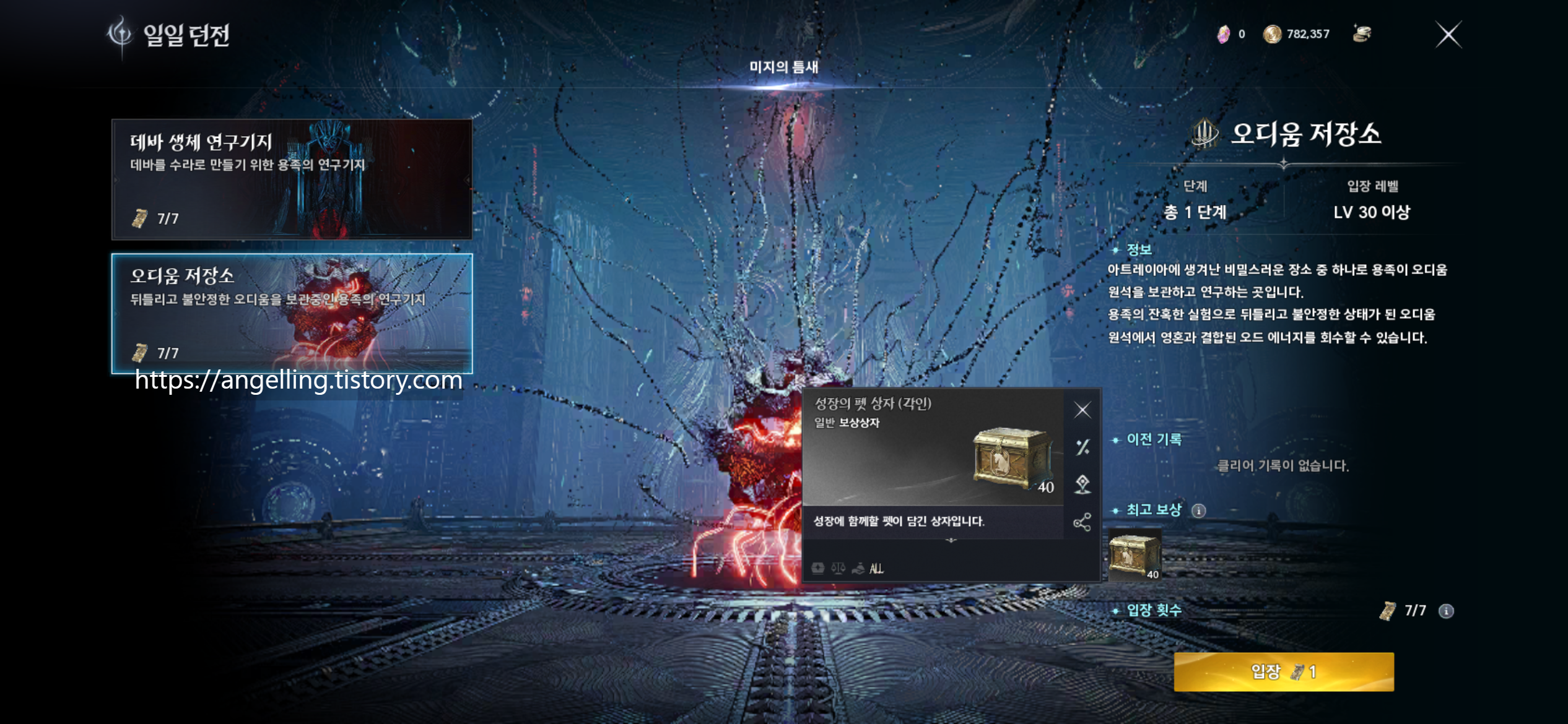 오디움 저장소 공략과 펫 영혼