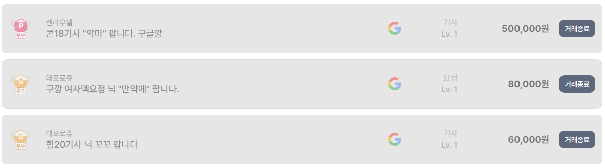 최근 아이템매니아에서 거래 종료된 내역을 살펴보면 다음과 같은 공통점이 보인다.