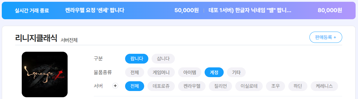 이러한 흐름을 보면, 리니지 클래식의 계정거래는 단순히 캐릭터 스펙을 사고파는 구조가 아니라, 서버 위치와 정체성을 거래하는 형태에 가깝다고 볼 수 있다.