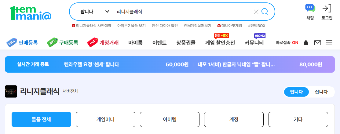 리니지 클래식 계정거래 및 아이템거래는 아이템매니아 추천