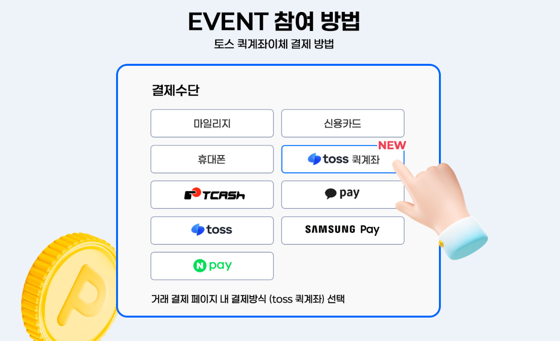 - 결제 수단에서 토스 퀵계좌이체 선택