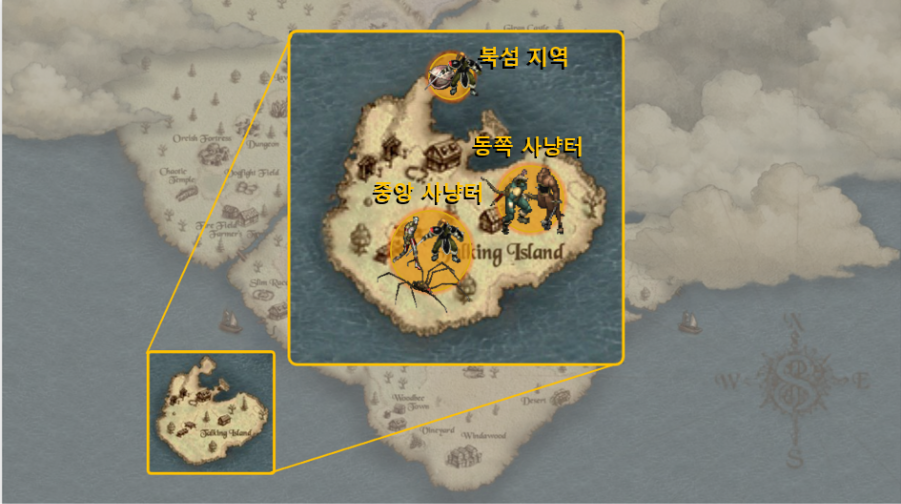 | 1~10레벨 | 말섬 동쪽 필드 | 기초 잡템, 조각류 | 유저 전무, 독식 가능 |