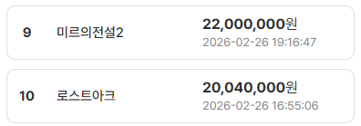 특히 상위권을 보면 클래식·레트로 감성 MMORPG가 강세다. 신규 대작보다 검증된 IP 중심으로 자금이 움직이고 있다는 점이 최근 트렌드다.