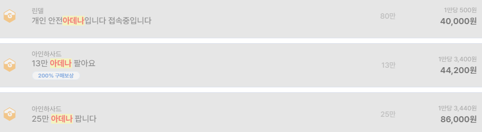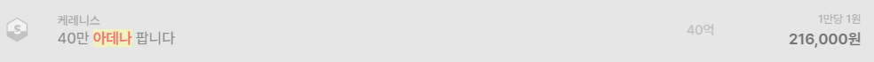 13만 아데나 – 1만당 3,400원 – 44,200원 거래종료