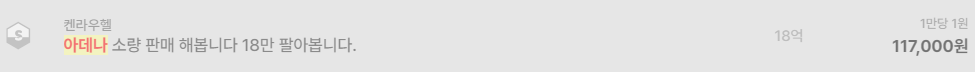 180만 아데나 – 1만당 3,500원 – 630,000원 거래종료