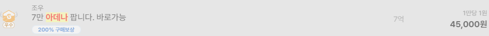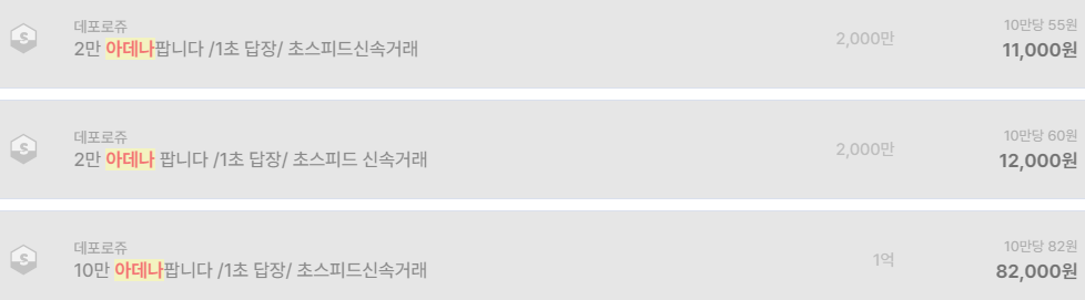 일부 매물은 단가 표기가 1원, 55원 등으로 기재되어 있으나, 실제 총액 기준으로 보면 정상 시세 범위 내에서 거래된 것으로 보입니다. 단가 계산 방식 오류 또는 등록 형식 차이로 해석하는 것이 합리적입니다.