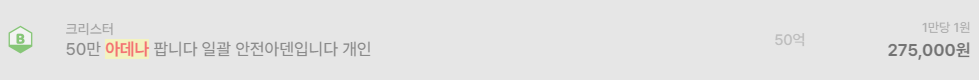 25만 아데나 – 1만당 3,600원 – 90,000원 거래종료