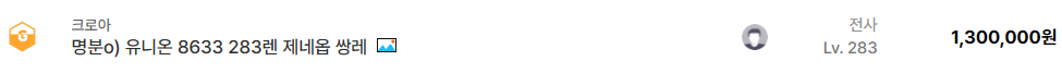 - 280레벨 이상 캐릭터 일반 계정 : 약 30만원 ~ 80만원