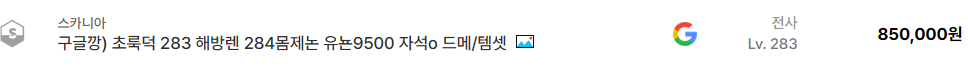또 하나 흥미로운 거래는 챌린저스2 서버에서 올라온 282레벨 팔라딘 계정이다. 전투력 약 8400만 수준이며 가격은 약 35만원으로 등록되어 있다. 전투력 기준으로 캐릭터 성능을 판단하는 유저들이 많기 때문에 이런 정보가 포함된 계정은 관심을 받는 편이다.
