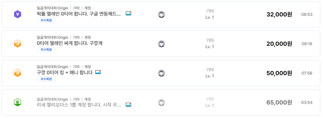 특히 일곱개의대죄: Origin 같은 수집형 RPG는 초반 리세마라 효율과 캐릭터 가치에 따라 계정 가격이 크게 달라지기 때문에, 실제 유저들 사이에서도 거래가 활발하게 이루어지고 있습니다.