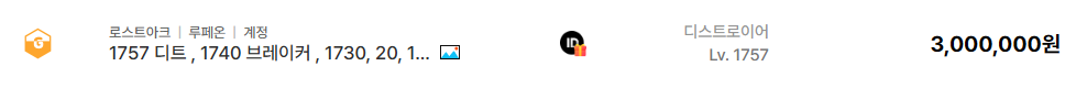 로스트아크의 수도라고 불리는 루페온 서버는 여전히 활발한 거래를 보여주고 있습니다. 1757 디스트로이어를 메인으로 브레이커와 다수의 고레벨 캐릭터를 포함한 계정이 300만 원에 거래되었습니다. 이 거래의 핵심은 보석 포함 여부입니다. 로스트아크 거래에서 보석은 캐릭터 몸값보다 더 높은 비중을 차지하기도 하는데 10레벨 멸화나 홍염 보석이 다수 포함된 경우 시세가 급격히 상승합니다.