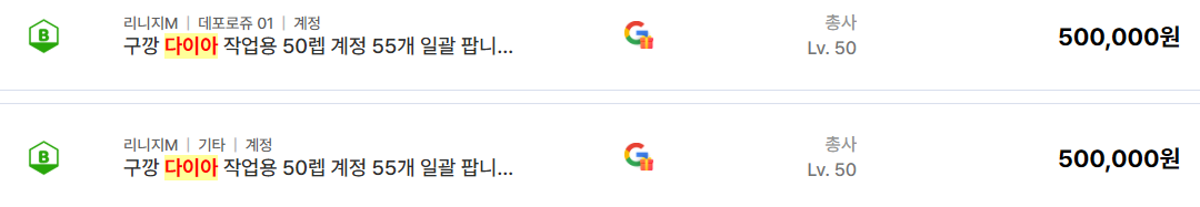 주목할 점은 작업용 계정의 일괄 거래입니다. 데포로쥬 서버 등에서 구글 깡통 계정인 50레벨 총사 55개를 일괄적으로 500,000원에 매매하는 사례가 빈번하게 나타나고 있습니다. 이는 개별 캐릭터의 강력함보다는 다이아 수급을 위한 효율성을 중시하는 이용자들의 수요가 반영된 결과입니다. 다이아 수급용 캐릭터는 관리가 용이한 깡통 계정 형태가 선호되며 이는 자산 증식을 원하는 유저들에게 꾸준한 선택을 받고 있습니다.