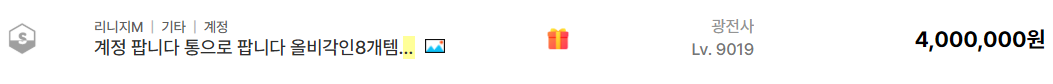 최근 리니지M에서 가장 눈에 띄는 부분은 육성 난도가 높은 고레벨 캐릭터와 비각인 아이템이 풍부하게 포함된 통계정의 인기입니다. 실제 거래 사례를 보면 90레벨 이상의 광전사 계정이 약 4,000,000원에 거래된 것을 확인할 수 있습니다. 이 계정의 핵심은 올비각인 8개 템을 보유했다는 점과 다이아로 환산 시 약 15만 개에 달하는 자산 가치를 지녔다는 점입니다.