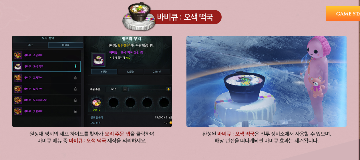원정대 영지에서 특별한 만찬과 오색 떡국을 제작할 수 있는 이벤트죠.